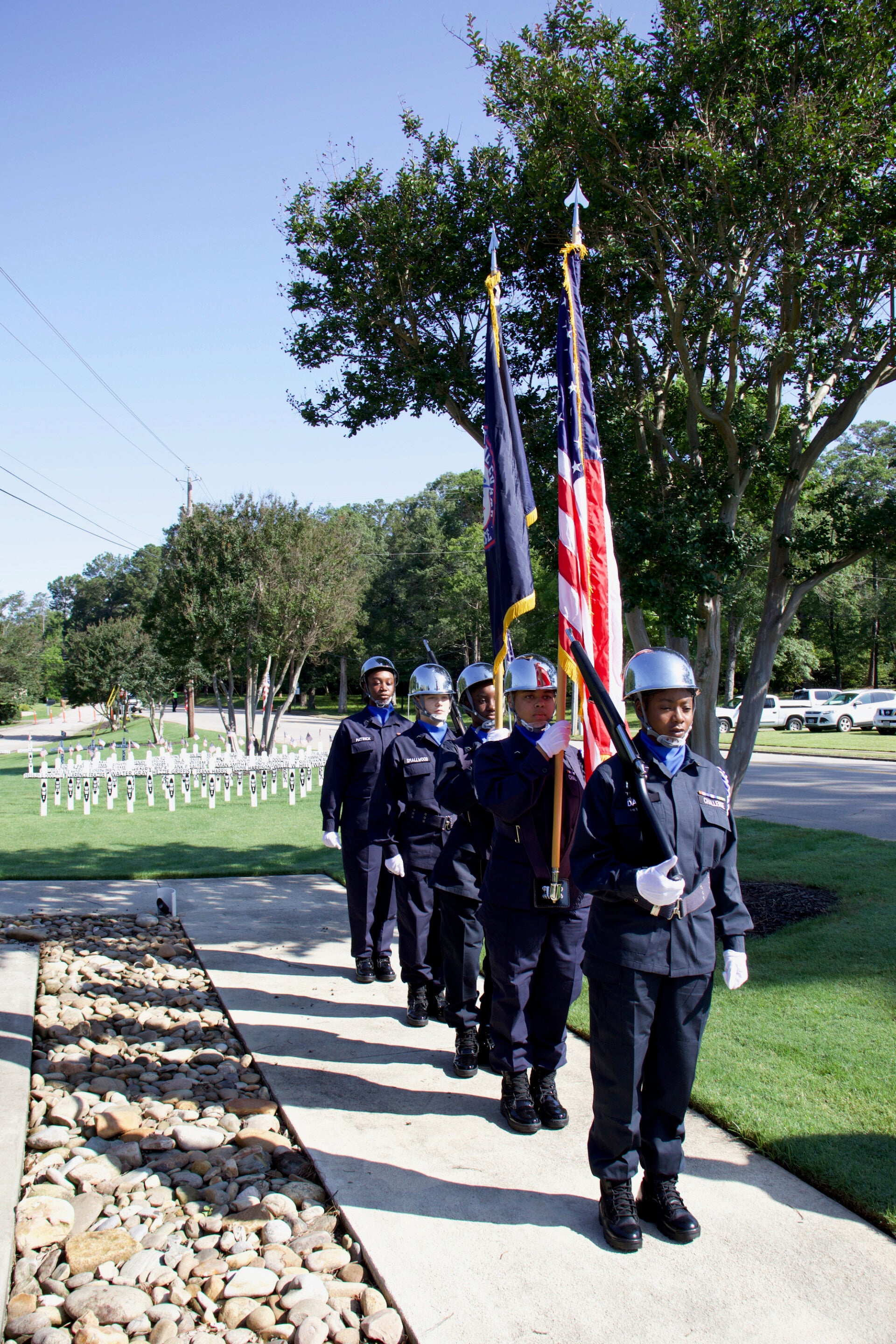 Guest speaker, Master Sergeant Dwight Hora, US Marine Corps, Retired addresses the crowd.