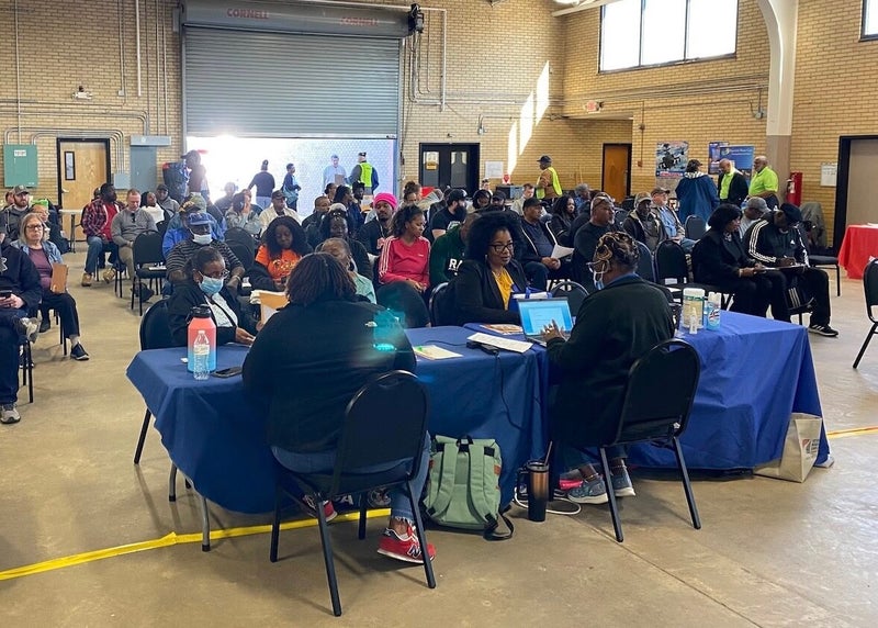 Action was nonstop as volunteers got veterans signed in, answered questions, and kept lines moving efficiently. Snack and drinks were served while staff processed claims and vendors enrolled veterans in services. The Center was the armory itself which stood as a hub for national, state, and community partners united to assist veterans that came here from all over.